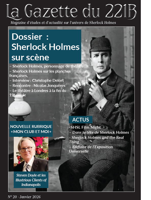 Sherlock Holmes est, comme nous l’avons souvent souligné, un personnage d’une remarquable plasticité, dont les aventures furent adaptées sous d’innombrables formes. La Gazette du 221B s’intéresse aujourd’hui à l’une des plus fécondes : le théâtre. Dès la fin du 19ᵉ siècle, alors que les premières nouvelles venaient à peine de paraître, les scènes anglophones s’en emparaient déjà : Under the Clock (1893), Le Sherlock Holmes de William Gillette (1899), ou encore The Speckled Band, écrite par Conan Doyle lui-même. La France suivit rapidement, avec une adaptation de Gillette jouée dès 1907 au Théâtre Antoine. D’autres œuvres ont marqué les décennies suivantes, du Loufock-Holmès de Cami (1926) au Chien des Baskerville de Raymond Marcillac (1974).