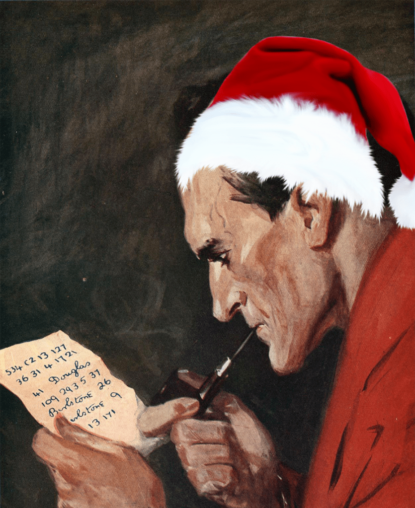 ‘I give up, Holmes. I can’t decipher this. It’s meaningless’. Holmes tutted and I knew I was wrong. ‘Nothing I do is ever meaningless, Watson’ he gently rebuked me, then continued. ‘The contents of that book mean a lot to a certain gentleman we met last Christmas’. As he spoke Holmes waved towards the bookcase and the little reading table where an irregular stack of books was piled. My eye caught the title of the topmost volume and suddenly the penny dropped as Holmes’ hint made everything clear. It was the ancient Greek legend of The Labours of Heracles.